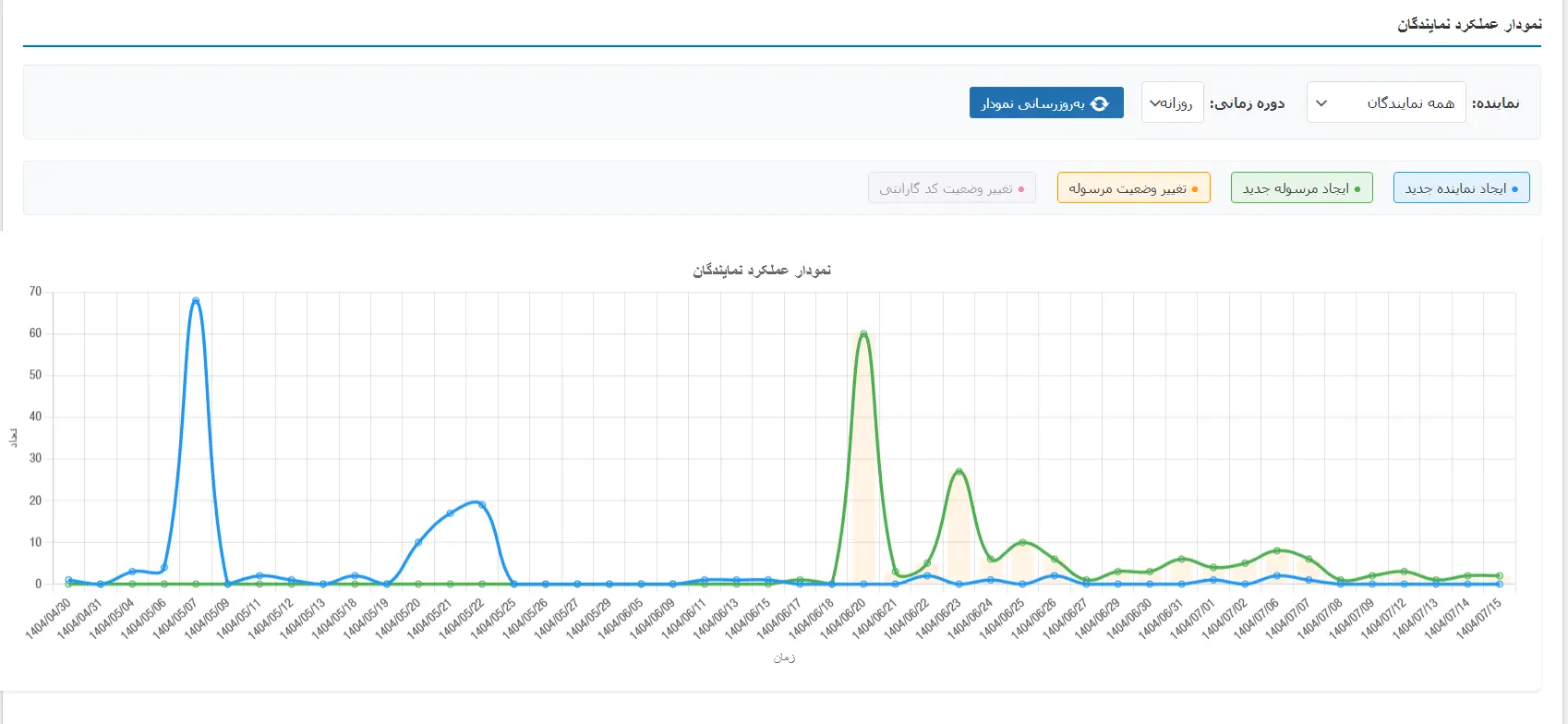 تعریف نماینده، تخصیص/لغو کد، فعالیتها و گزارشها، پنل اختصاصی نمایندگان.